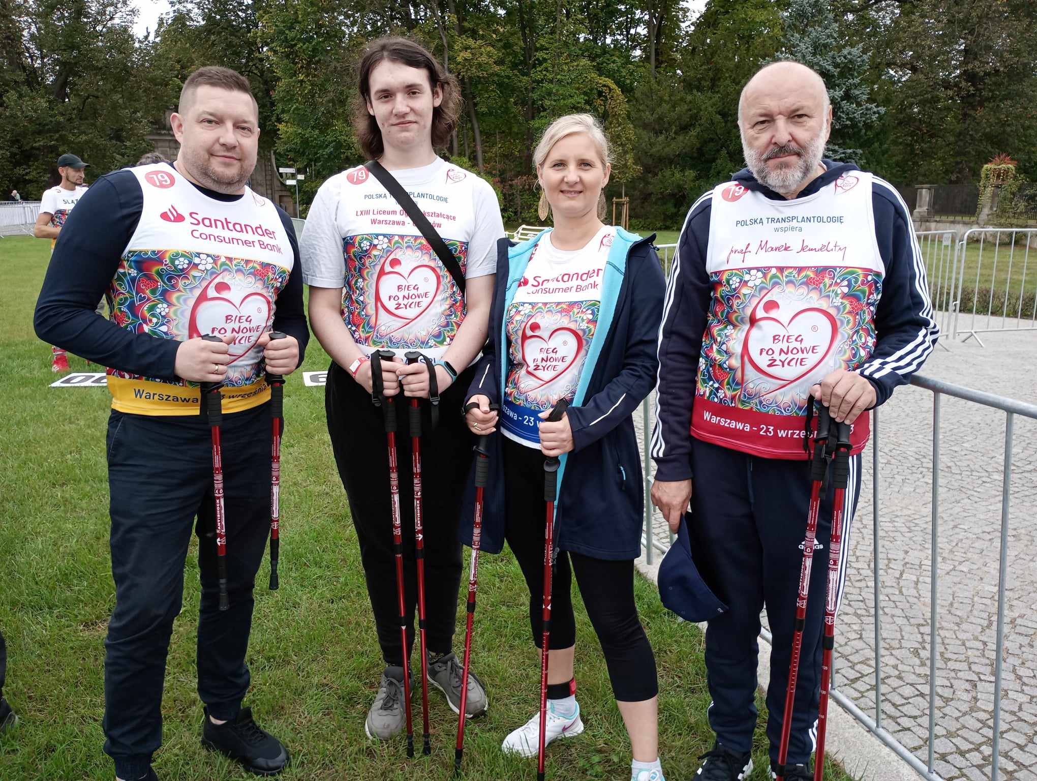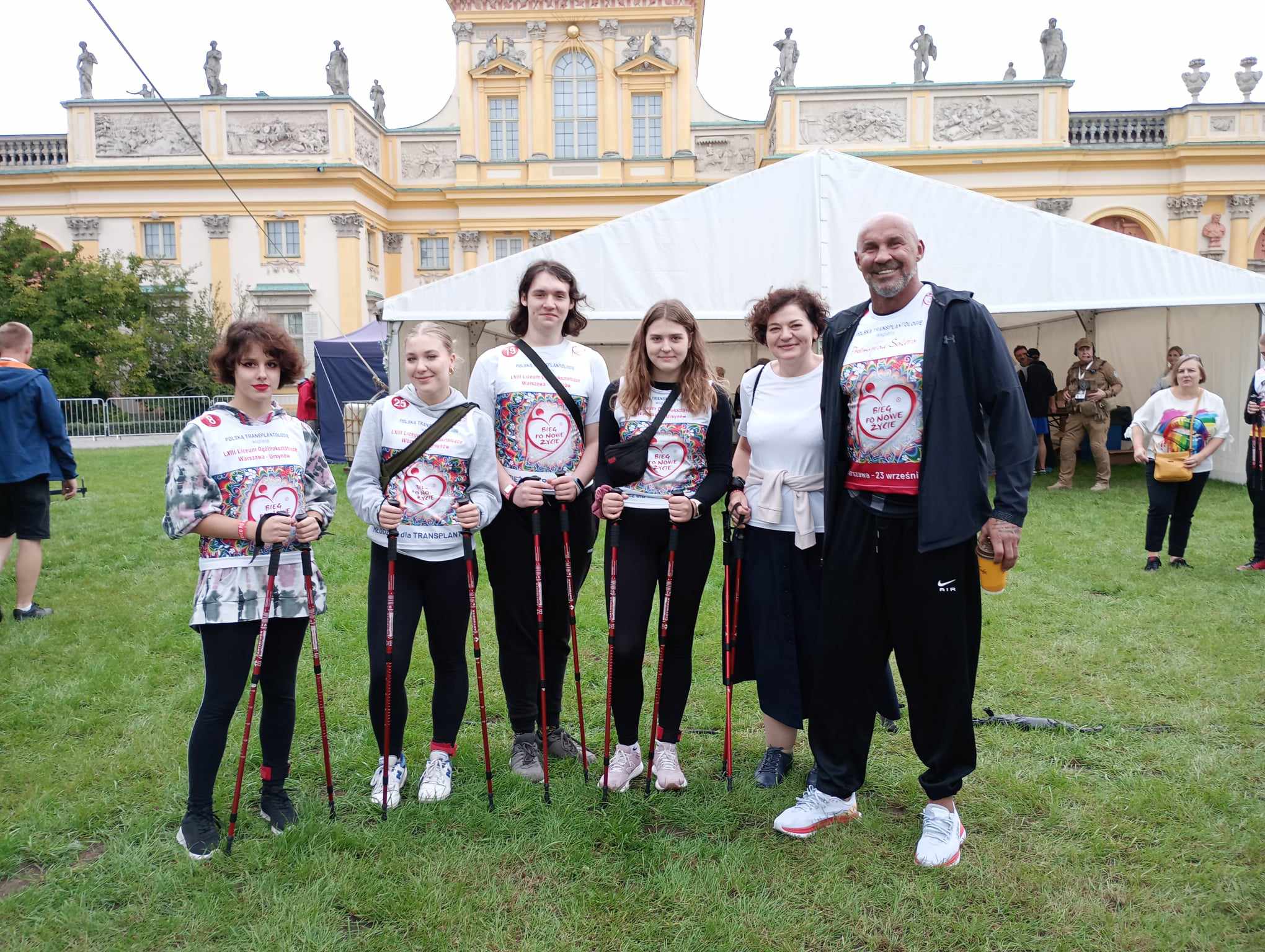 W sobotę 23 września 2023 r. wszyscy uczestnicy spotykali się przed Muzeum Pałacu Króla Jana III w Wilanowie. Trzy uczennice klasy 3b oraz dwóch uczniów klasy 4c założyli koszulki z numerem startowym, otrzymali kije do do nordic walking oraz czipy liczące czas i ruszyli na poszukiwania uczestników swojej sztafety. W każdej sztafecie było czterech uczestników: osoba po transplantacji, lekarz transplantolog, osoba reprezentująca media oraz uczeń. Dystans był symboliczny, ale impreza promująca świadome dawstwo narządów do przeszczepień i przybliżająca społeczeństwu ideę transplantacji wspaniała. Uczniom kibicowały pani profesor Joanna Wojciuk i pani profesor Renata Kos.