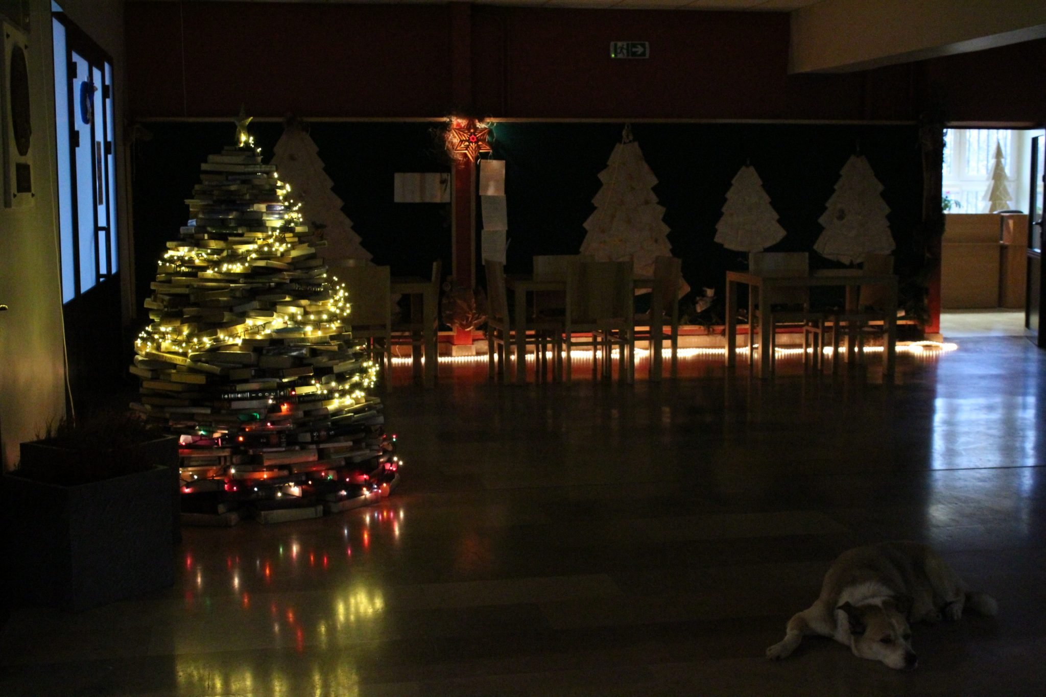 Projekt „Choinka z książek” (około 3 tys. woluminów) zrealizowałam razem ze wspaniałymi, wytrwałymi w działaniu i dążeniu do osiągnięcia celu, uczniami: Mikołajem Niemirskim i Aleksandrą Sobotą oraz: Wiktorią Mazur, Olą Michałecką i Olą Wesołowską z klasy 1B. Bardzo im dziękuję za wykonanie i współpracę.