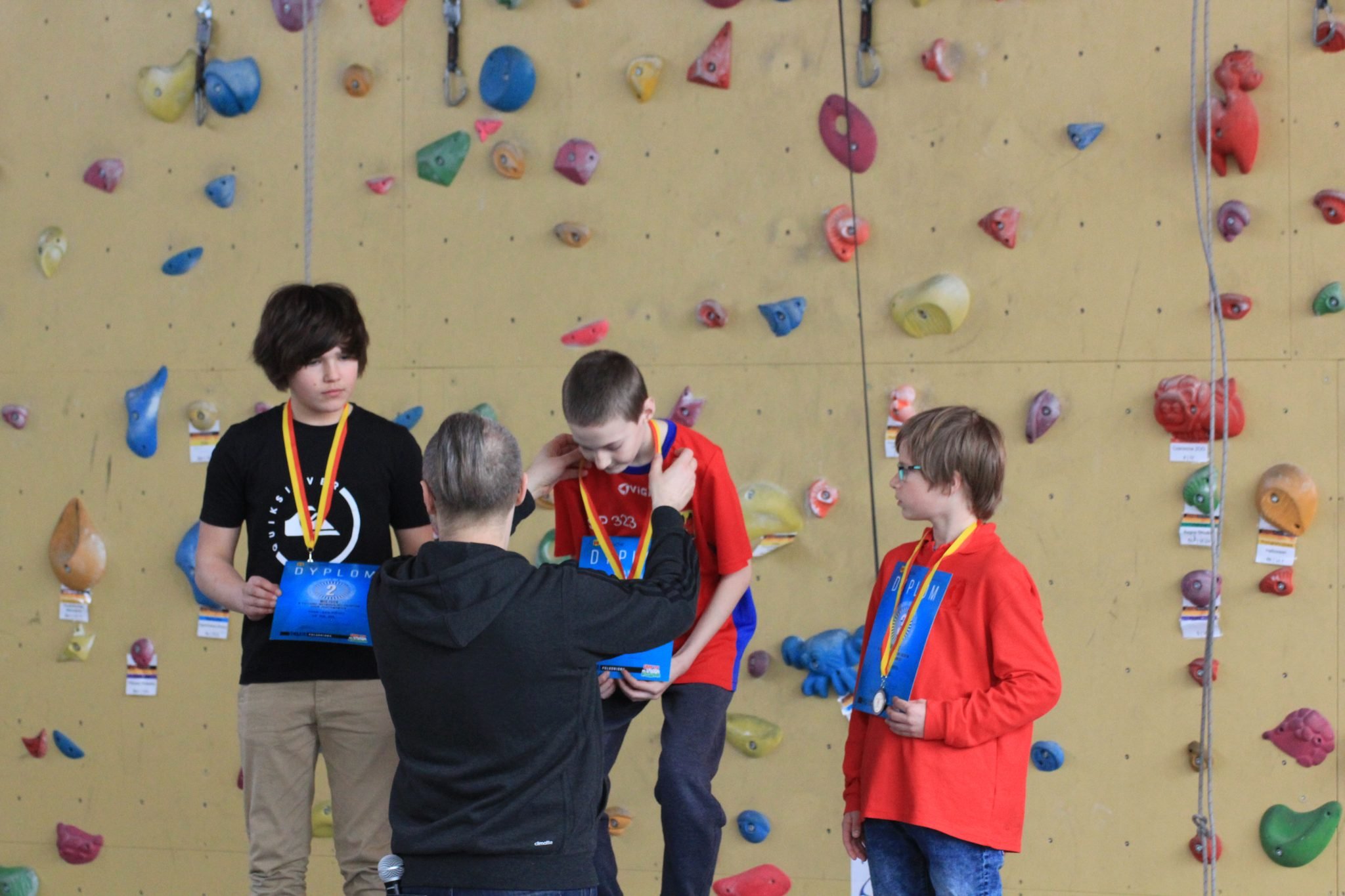 Zawodnicy, oprócz pamiątkowych dyplomów ufundowanych przez Panią Agatę i Pana Piotra, czyli właścicieli ścianki, otrzymali również wiele nagród od naszych sponsorów. Od Multikina drużyny dostały wejściówki do kina na dowolny film. Leroy Merlin zafundowało zawodnikom kubki, opaski na rękę i tym podobne gadgety, a Wydział Sportu Dzielnicy Ursynów zaopatrzył nas w piękne puchary oraz medale dla uczestników Mistrzostw.