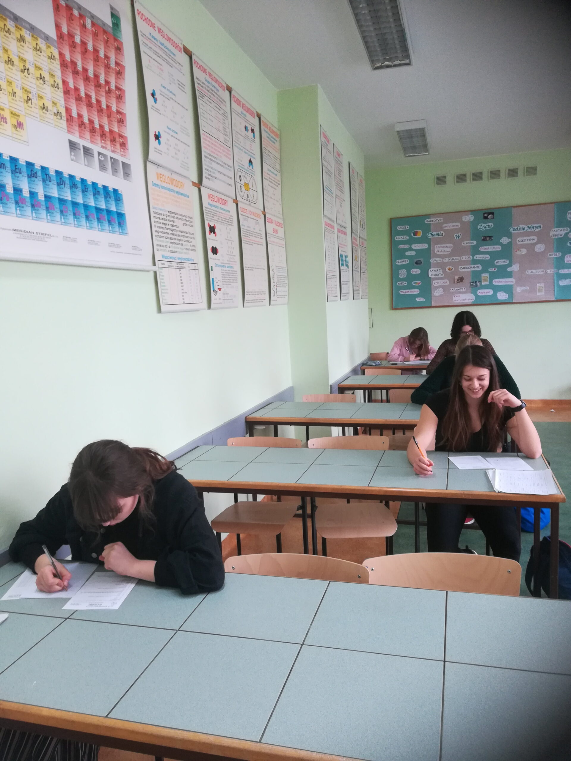 Jedenastu uczniów z klasy I, II i III pisało test składający się z 30 pytań zamkniętych oraz jednego pytania opisowego na temat zjawisk chemicznych zachodzących w środowisku naturalnym. Karty pracy wysłaliśmy do organizatora konkursu i z niecierpliwością czekamy na wyniki a one dopiero w maju………..