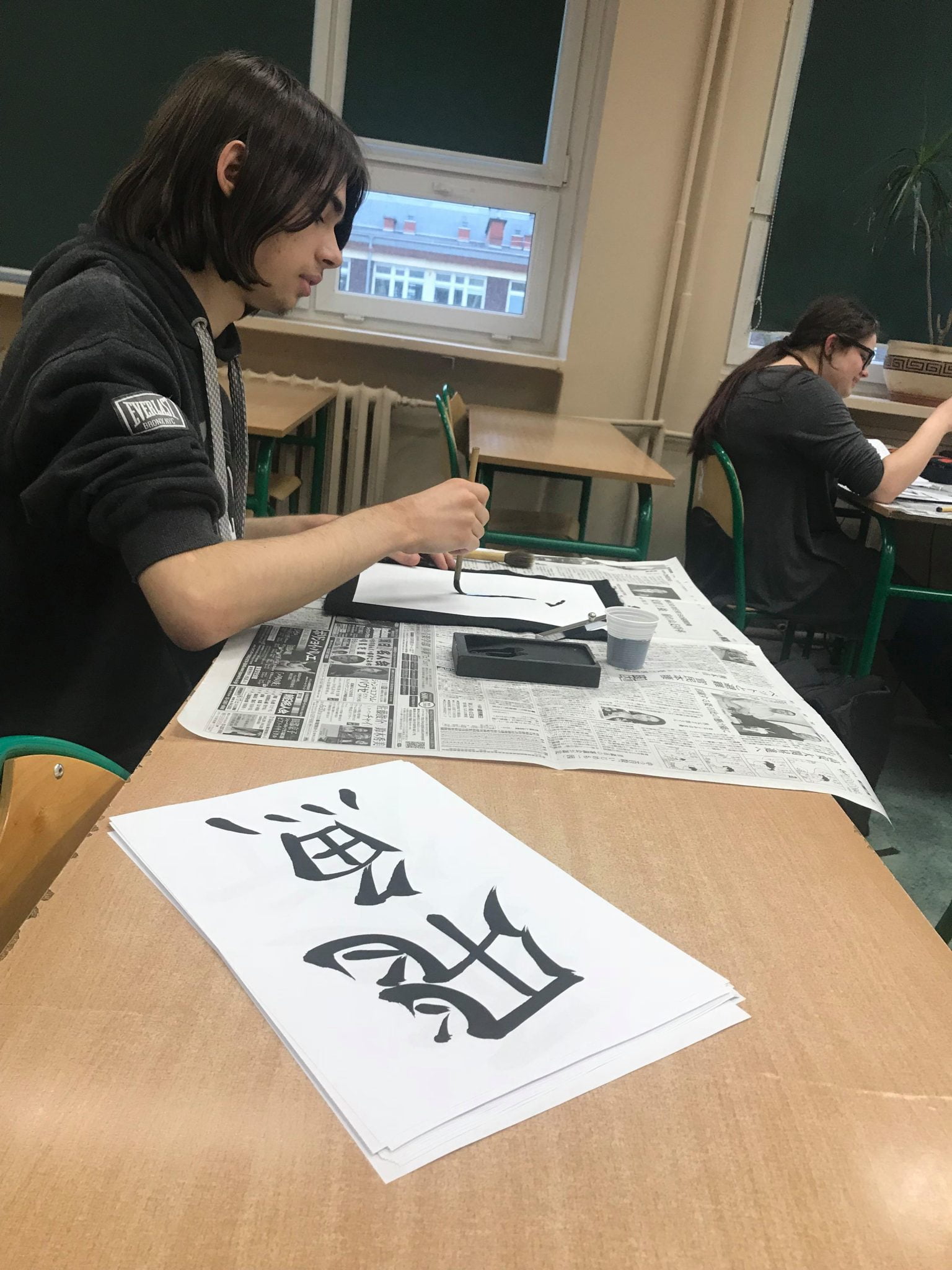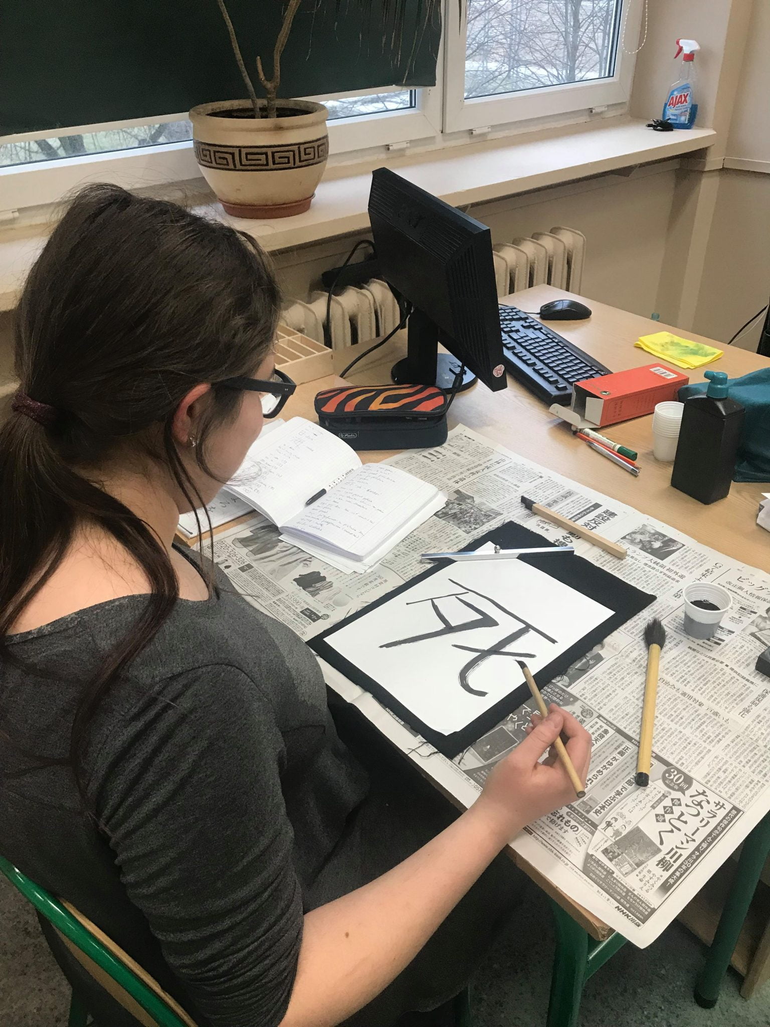 Lekcja kaligrafii na języku japońskim