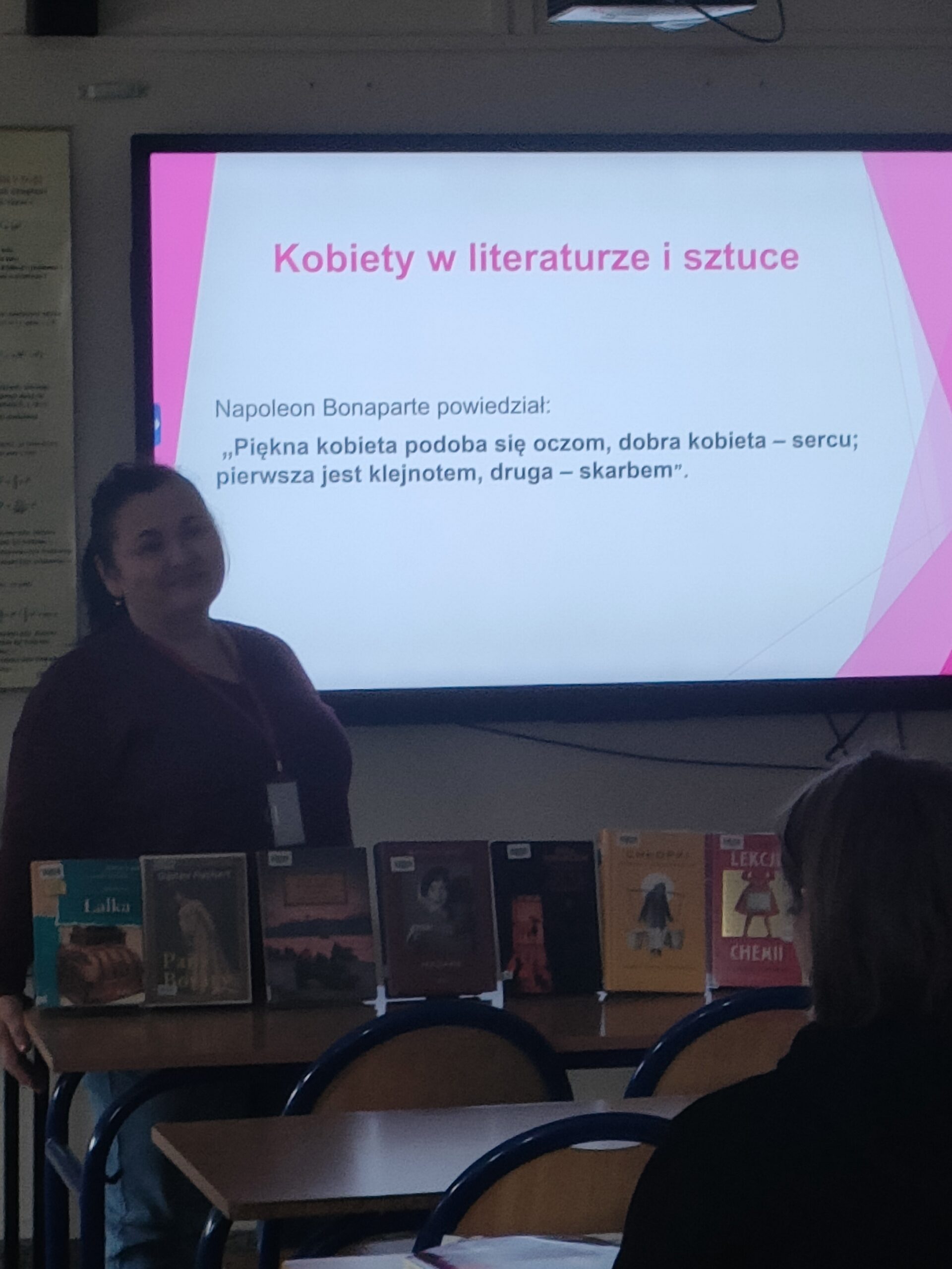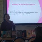 20 marca odbyła się lekcja otwarta na temat Kobiety w literaturze i sztuce, którą przygotowała i przeprowadziła pani Profesor Jolanta Wilczek. Pani Profesor opowiedziała młodzieży o wyjątkowych kobietach znanych z literatury – były Helena Trojańska i Antygona ze szkolnych lektur, była femme fatale Lady Makbet, była Izabela Łęcka z Lalki, Pani Bovary, jak również np. nasze prababki z bestsellerowych Chłopek czy bohaterki książek fantastycznych. Na lekcji młodzież obejrzała też fragmenty filmów, słynne obrazy przedstawiające kobiety i wysłuchała piosenkę. Lekcja otwarta odbyła się w ramach Narodowego Programu Rozwoju Czytelnictwa, w którym bierze udział nasza biblioteka.