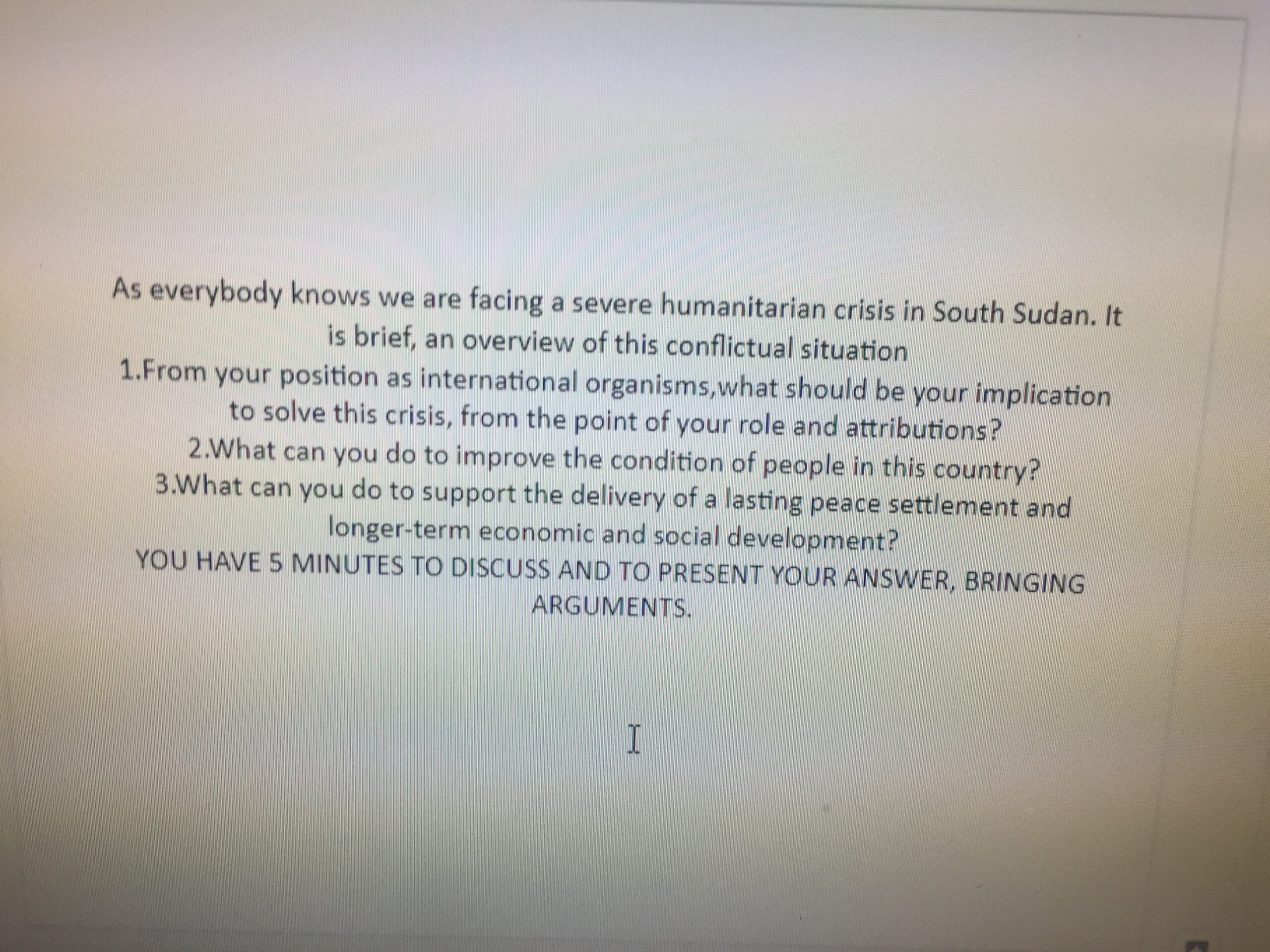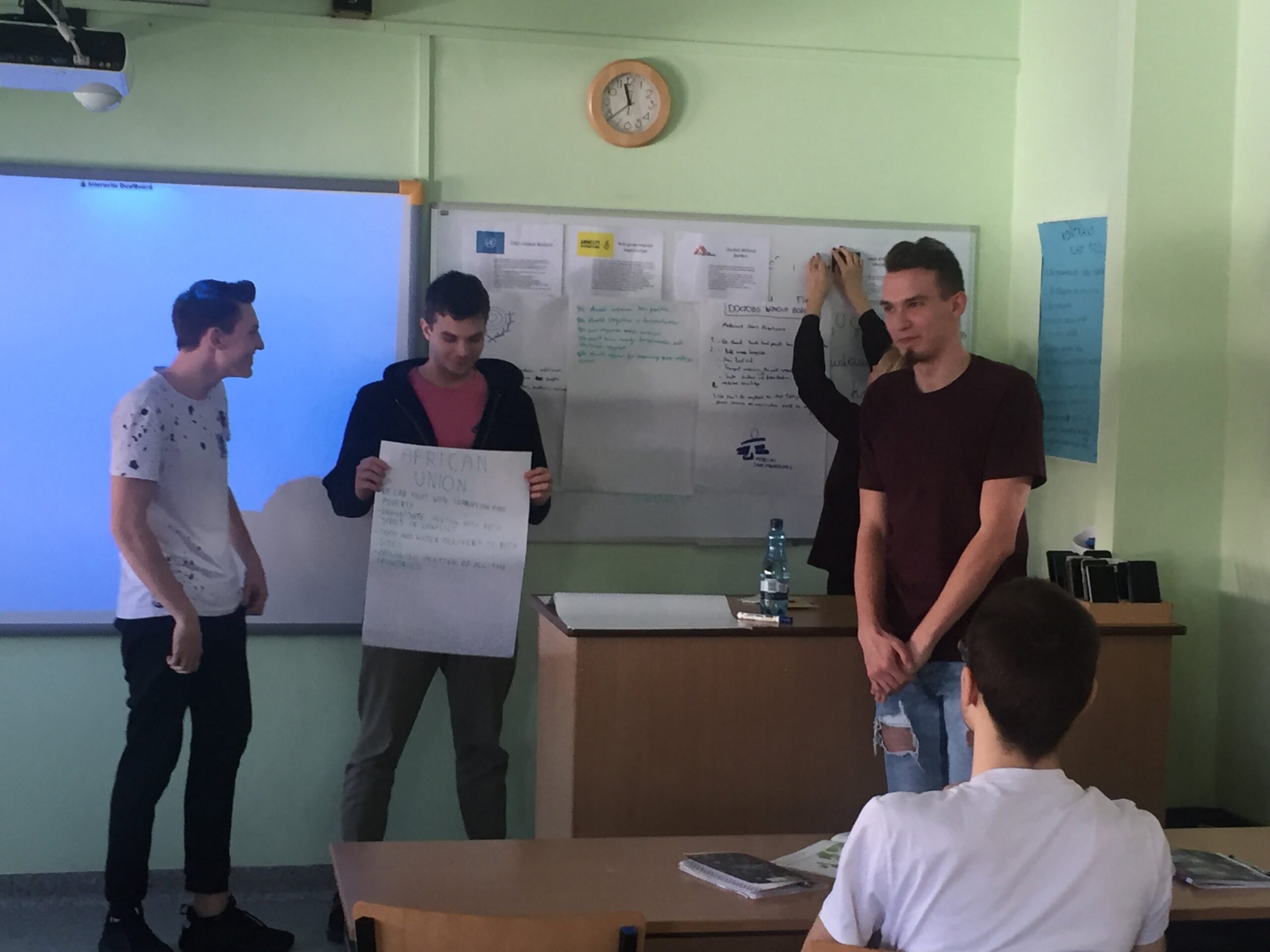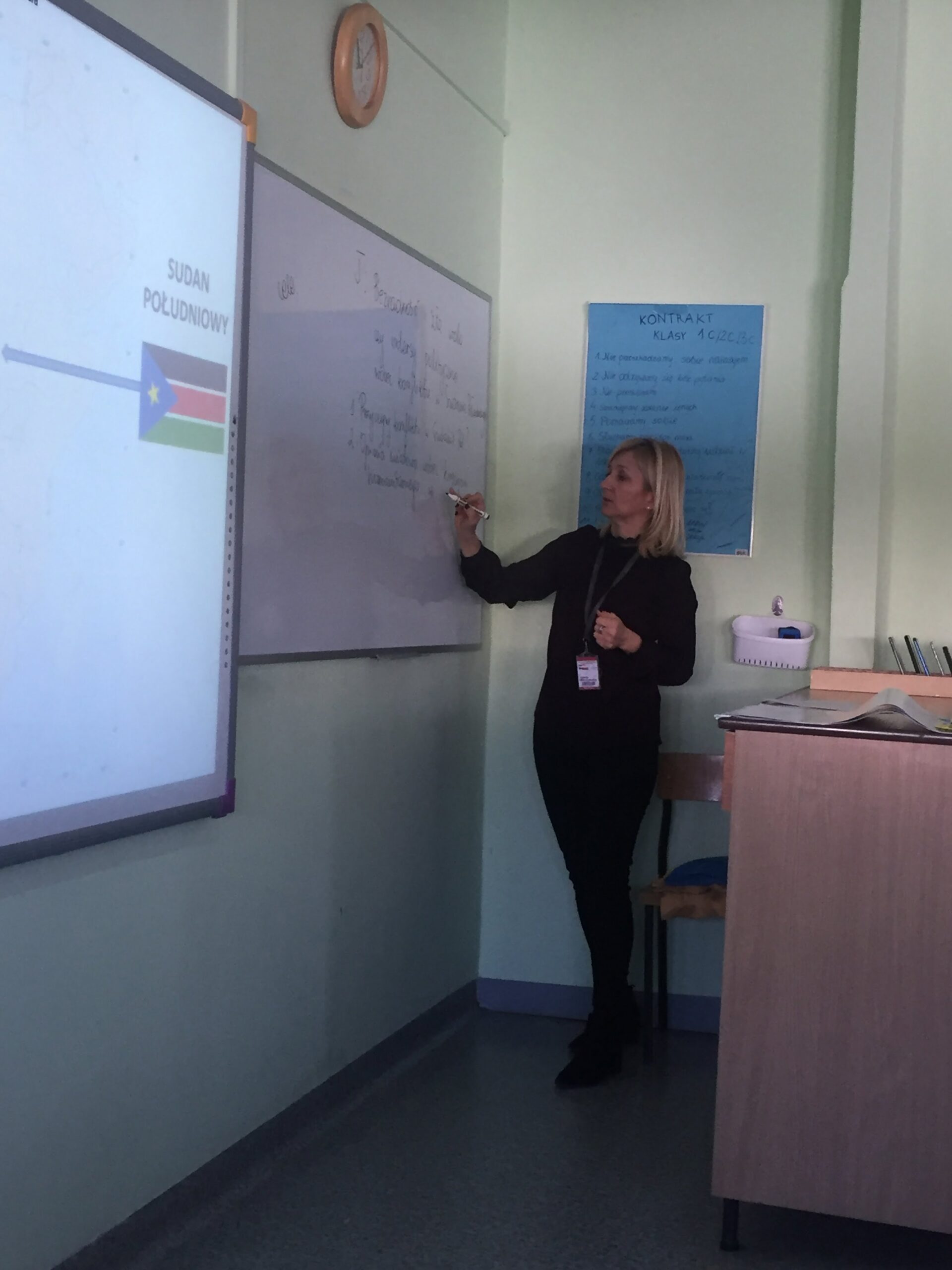 Temat lekcji “Bezradność, zła wola czy interesy polityczne wobec konfliktu w Sudanie Południowym?- z wykorzystaniem nauczania dwujęzycznego” i pomysł na taką formułę zajęć zainspirowany został pobytem nauczyciela WOS Pani Jolanty Wiszniewskiej i nauczyciela języka angielskiego Pani Ingi Chrościckiej Woźniak z uczniami na seminarium ” Historia Pokoju XX wieku” w Rumunii, w ramach projektu ACT4Peace.