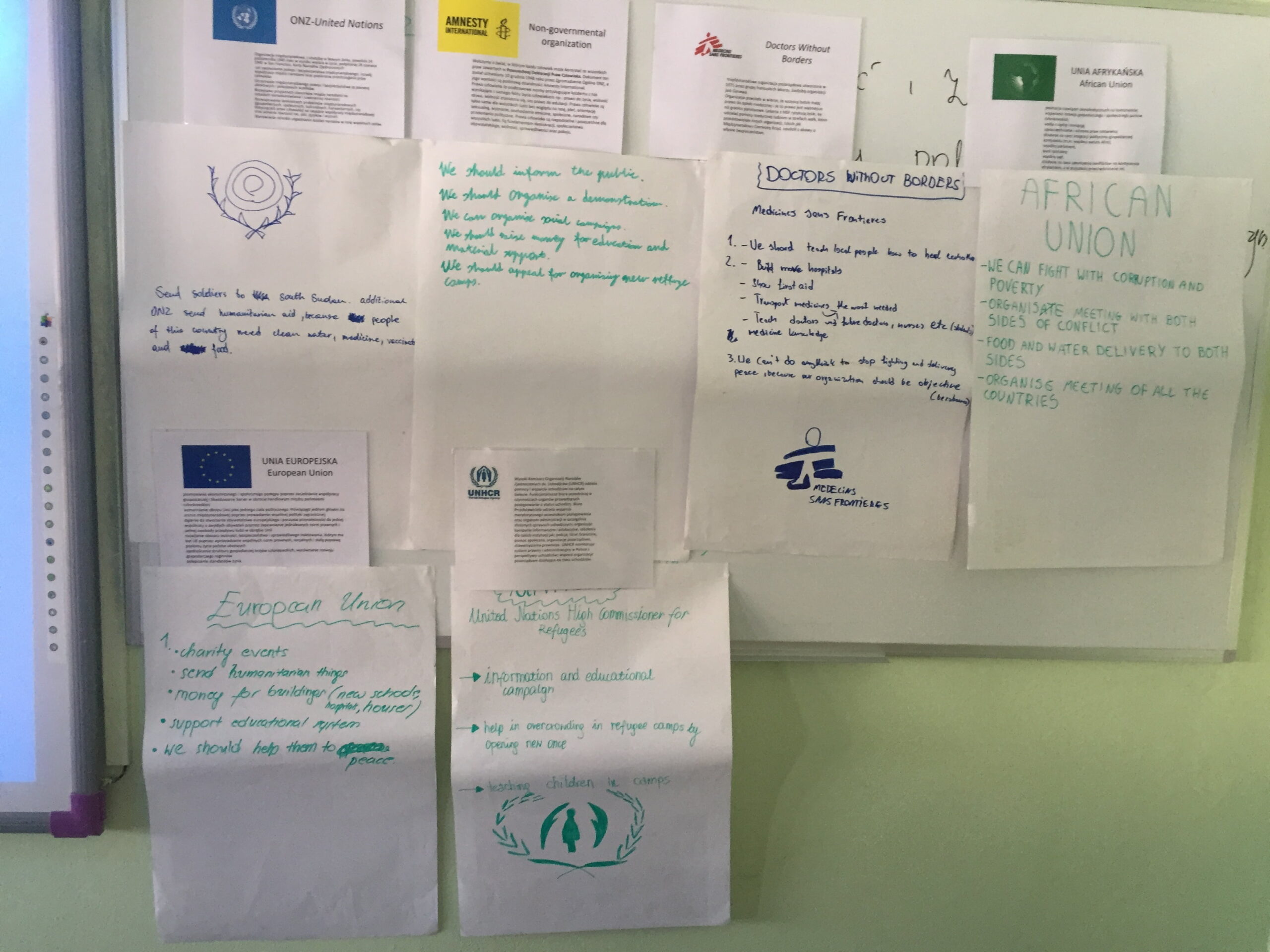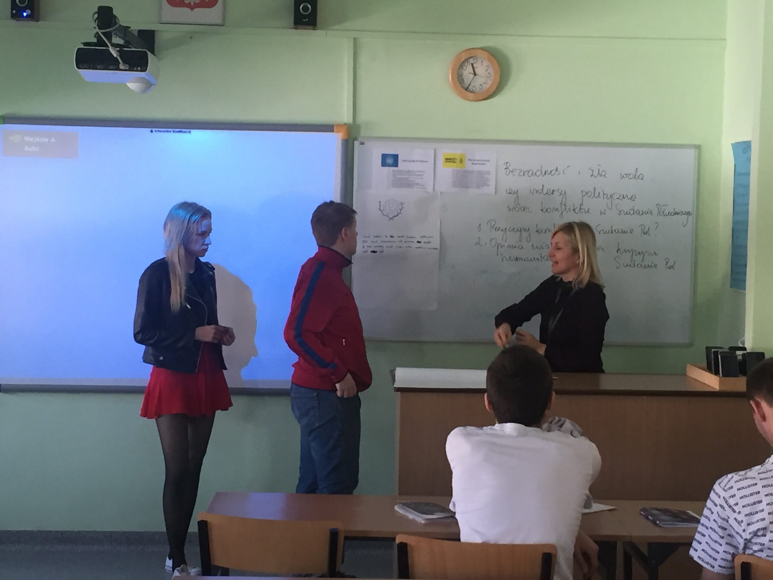 W czasie lekcji uczniowie próbowali zrozumieć złożoność przyczyn konfliktu w Sudanie, wskazywali przykłady łamania praw człowieka i nieskuteczność dotychczasowych działań oraz próbowali wskazać sposoby i metody przezwyciężenia kryzysu humanitarnego, działań na rzecz pokoju i praw człowieka z wykorzystaniem wiedzy na temat kompetencji organizacji międzynarodowych.