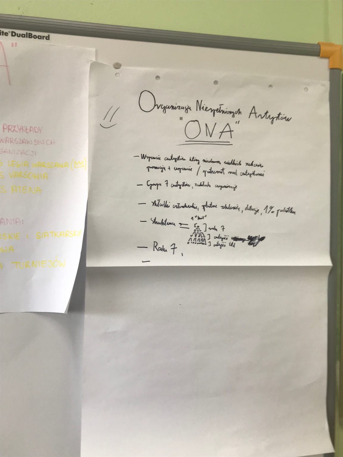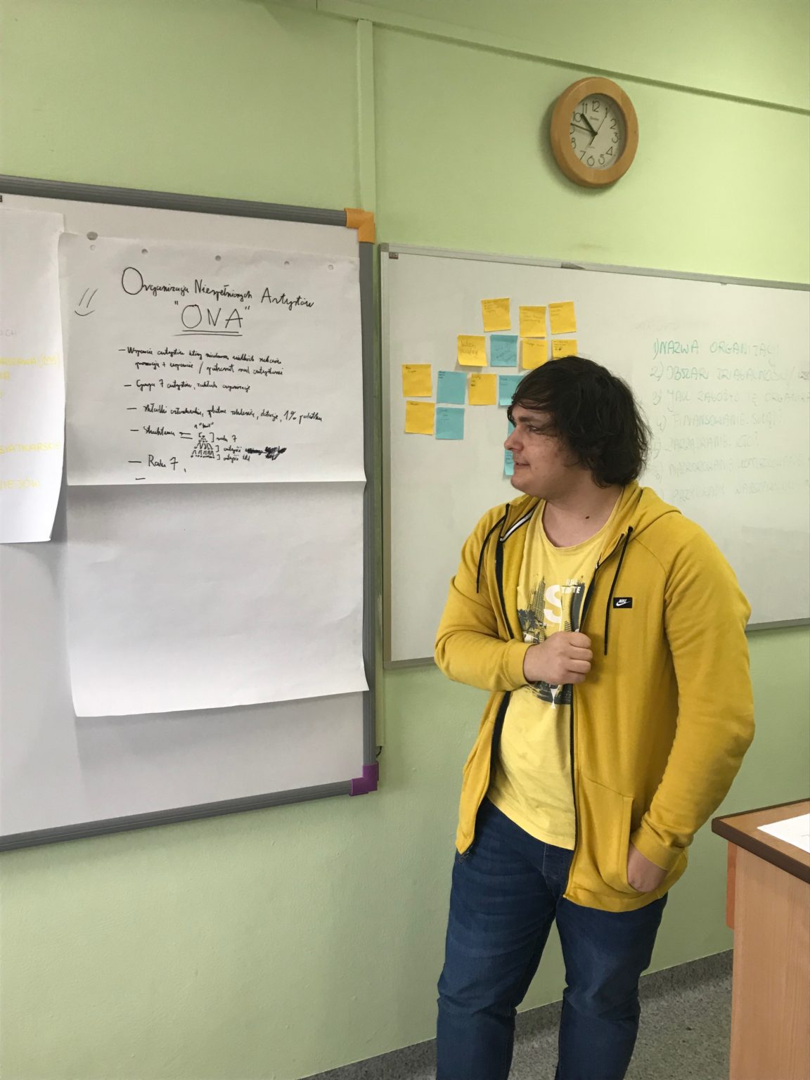 W grudniu  rozpoczęliśmy realizacje  „Pozarządownika szkolnego” – programu, który ma na celu rozwijanie wiedzy o III sektorze wśród uczniów warszawskich szkół ponadpodstawowych. Organizatorami programu są ponownie Fundacja Pole Dialogu i Centrum Edukacji Obywatelskiej.  Pierwsza cześć projektu to tzw. lekcja wstępna, później uczniowie rozegrali ,, Grę w zmianę” a w dniu dzisiejszym odbyły się warsztaty, w trakcie których pracując w grupach wymyślali organizację pozarządową, którą chcieliby założyć. Musieli wymyślić nazwę, obszar działania, sprzymierzeńców.  Następnym etapem będzie spotkanie z mentorem i poszukanie organizacji pozarządowej w Warszawie, z która młodzież chciałaby nawiązać współpracę i zrealizować działanie projektowe.