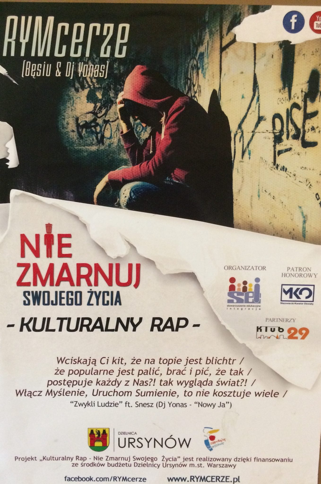 Dnia 10.03 w ramach projektu Warszawskich Inicjatyw Edukacyjnych, w którym nasza szkoła bierze udział, odbyło się pierwsze spotkanie z zaproszonymi gośćmi. Projekt “Wolność od, wolność ku” związany jest z profilaktyką uzależnień i ma zakończyć się wystawieniem przedstawienia pt. “Tylko jeden raz”. Koordynatorkami wydarzenia są pani profesor Angelika Riabinow – polonistka i pani Agnieszka Makowska – pedagog. Tym razem gościliśmy grupę Rymcerzy, którzy opowiedzieli nam o swoich osobistych doświadczeniach bycia w pułapce uzależnienia od narkotyków i wyjściu z nałogu. Rymcerze wykorzystują rap i w jego rytmach przekazują drogę ,jaką przebyli od uzależnienia do wolności. Kolejne spotkanie z ciekawymi gośćmi już wkrótce