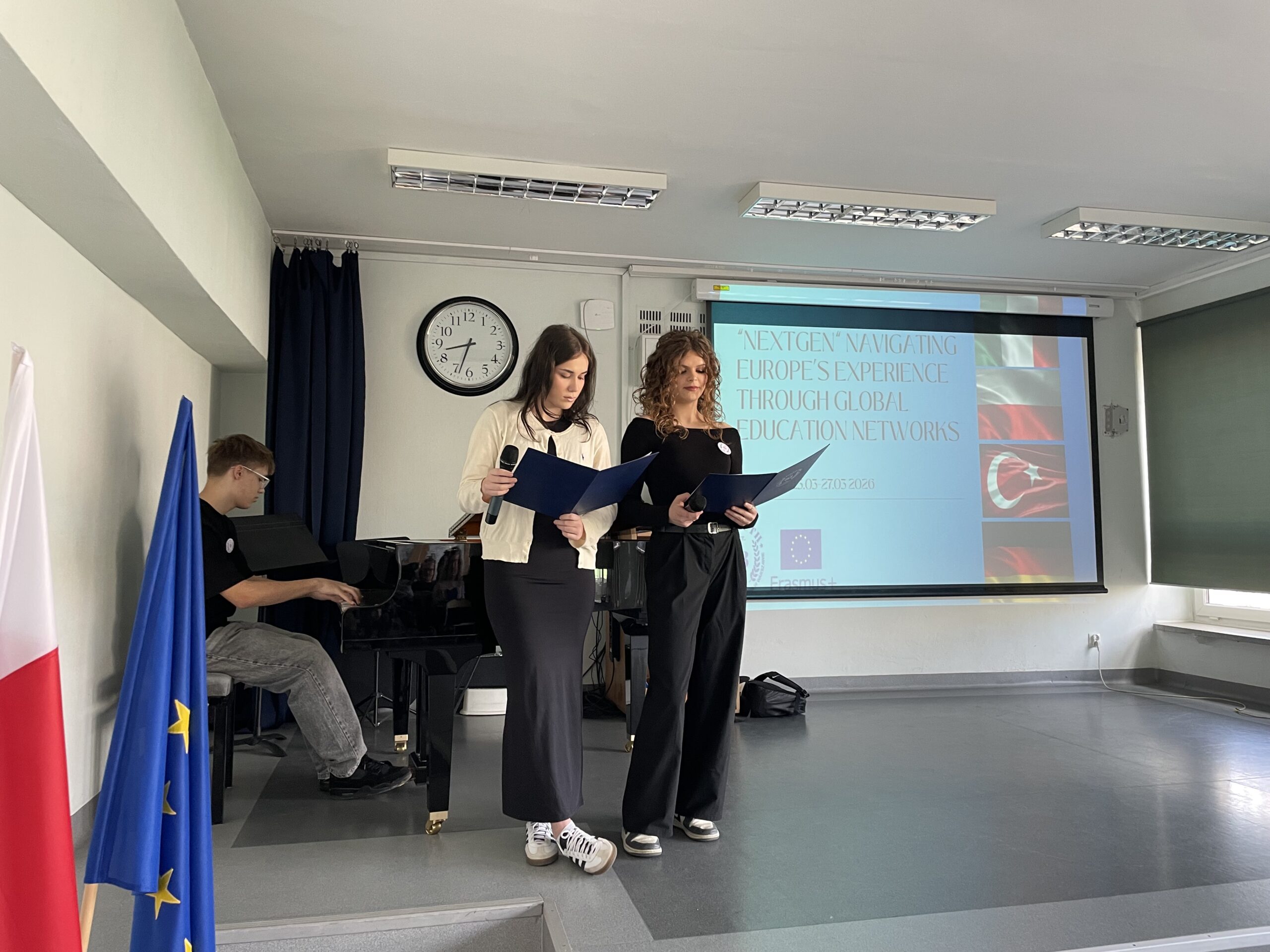 W dniach od 23 do 27 marca gościliśmy w naszym liceum partnerów z Niemiec, Włoch i Turcji w ramach realizowanego Projektu Erasmus+ “Navigating Europe’s Experience Through Global Education Networks” NEXTGEN. Projekt skupiał się na nowych technologiach i ich wykorzystaniu w procesie nauczania. Podczas naszych poprzednich spotkań dzieliliśmy się doświadczeniami szkolnymi, wykorzystywaliśmy nowe technologie do tworzenia prac i warsztatów. Szczególnie interesowaliśmy się błyskawicznym rozwojem AI i jego wpływem na nasze życie. Stąd też wspólne lekcje informatyki i zajęcia na Wojskowej Akademii Technicznej. Jednak naszym Gościom chcieliśmy również zaprezentować wybrane wydarzenia z historii Polski. Stąd wizyta w Muzeum Powstania Warszawskiego oraz w Muzeum Polin. Spacer śladami Getta w Warszawie oraz gra miejska na Krakowskim Przedmieściu. Ważnym elementem była wycieczka do Lublina, podczas której nasi uczniowie wcielili się w rolę przewodników. Odkrywaliśmy wielokulturową historię tego malowniczego miasta. Byliśmy również w Majdanku, miejscu szczególnym, które jest świadectwem jak mowa nienawiści i propaganda może prowadzić do eksterminacji. Nasi Goście byli bardzo poruszeni wizytą i podkreślali jak ważne są wartości, które wspiera Unia Europejska w budowaniu relacji i pokojowym współistnieniu.Elementem integracji młodzieży były pokazy taneczne oraz wspólna nauka polskich tańca narodowych oraz prezentację szkół.