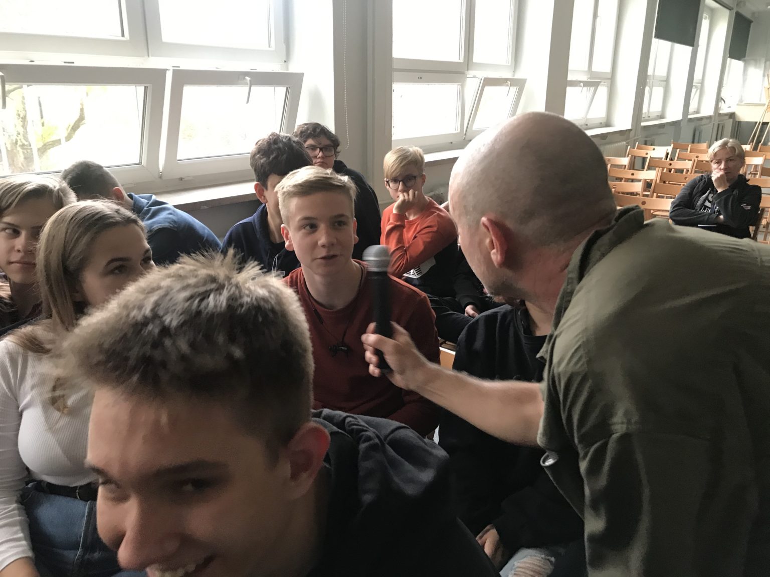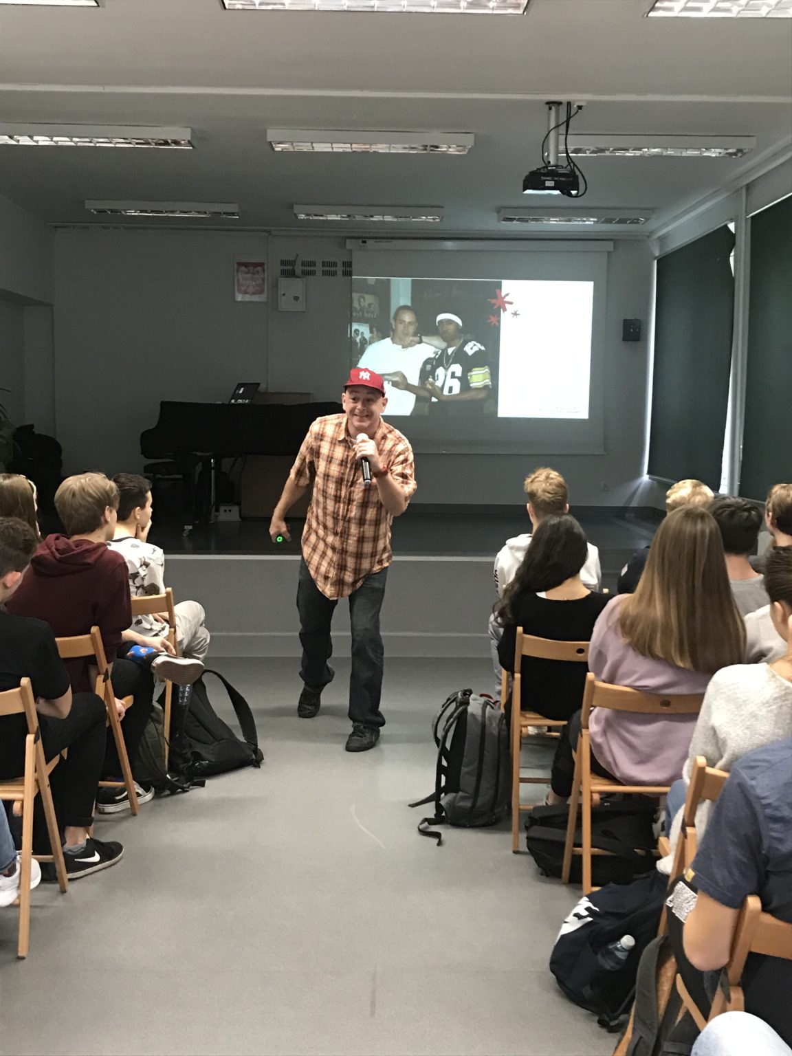 12 listopada, już po raz czwarty, odwiedził naszą szkołę słynny na kanale youtube oraz uczestnik francuskiej wersji programu Mam Talent, nauczyciel języka angielskiego -Jason R. Levine, czyli Fluency MC. Jason znany jest z innowacyjnego podejscia do nauczania. Mianowicie używa on właśnie rapu wierząc, że dobra zabawa oraz połączenie nauki języka i muzyki prowadzi do lepszego zapamiętywania słownictwa i struktur gramatycznych.
