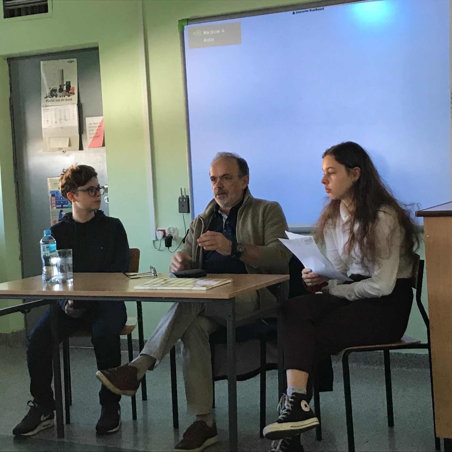 Spotkanie prowadzili Melania i Kuba, którzy starali się uzyskać informacje dotyczące warunków pracy fotoreporterów zaangażowanych politycznie po stronie Solidarności, wynikających z tego zagrożeń ale jak wynikała z relacji naszego Gościa, również czasami śmiesznych i zupełnie nieoczekiwanych sytuacji. Młodzież pytała o warunki życia w realiach PRL , o działaczy Solidarności z którymi współpracował ale również o nastroje społeczne. Była to wyjątkowa lekcja historii.