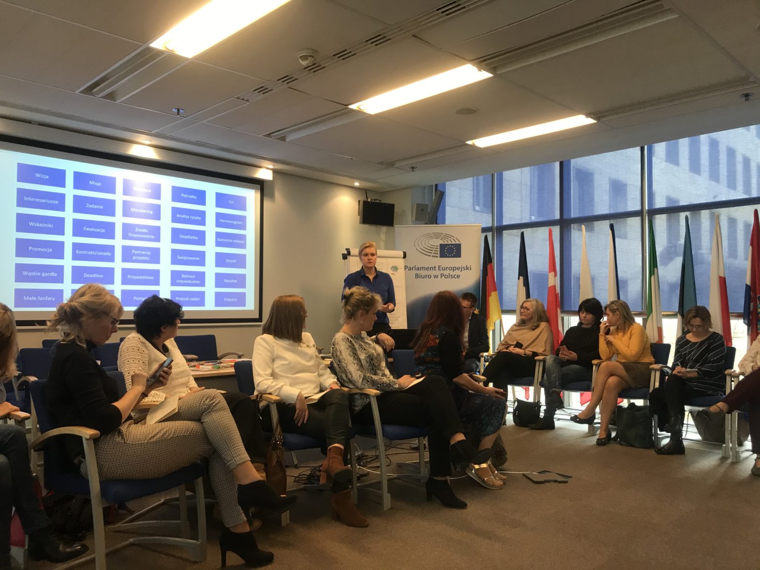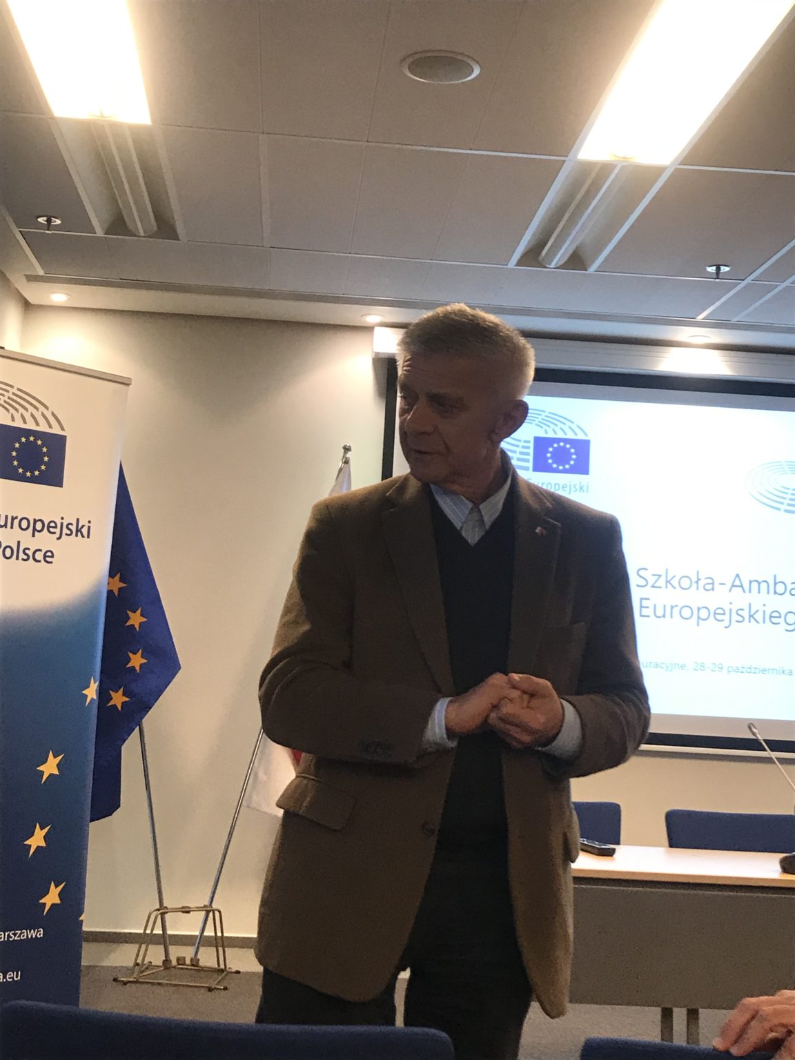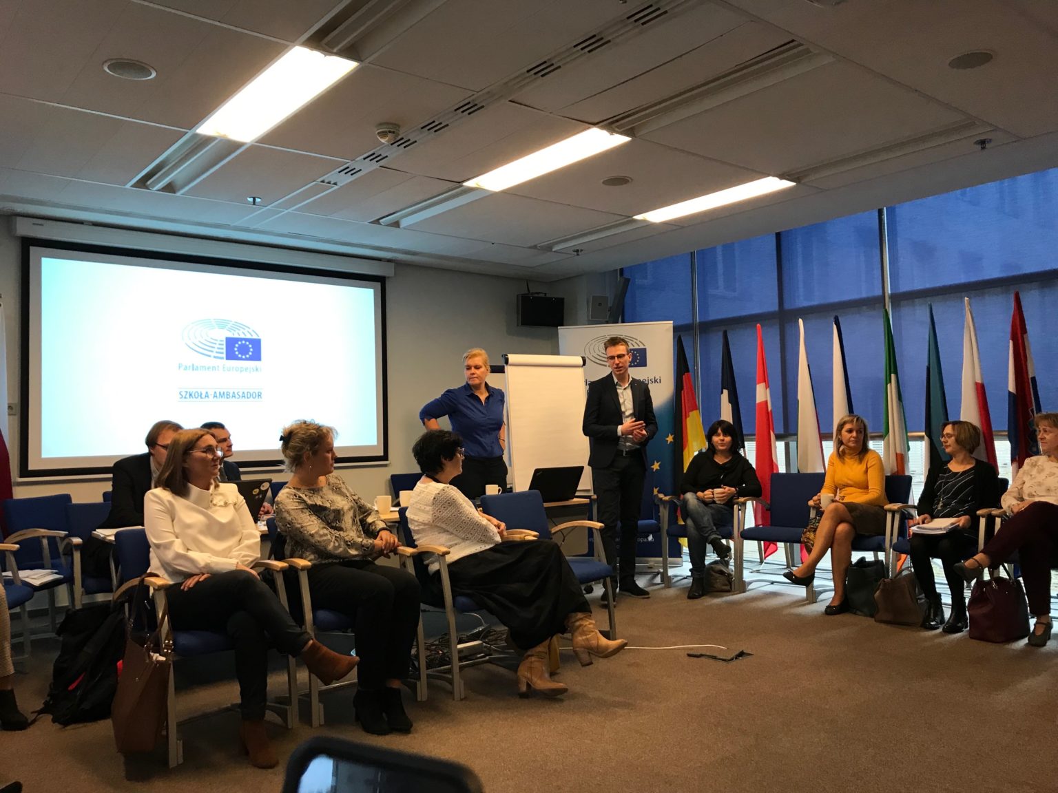 W dniu dzisiejszym odbyło się szkolenie Starszych Ambasadorów w Punkcie Informacyjnym PE w związku z rozpoczęciem kolejnej edycji programu. Zajęcia warsztatowe prowadzone przez trenerów miały na celu wymianę doświadczeń pomiędzy osobami uczestniczącymi i przystępującymi do programu. Duży nacisk położymy został na prace metoda projektu. Na koniec mieliśmy możliwość osobiście poznać pana Marka Belkę, który opowiadał nam o swoich doświadczeniach z pracy w Parlamencie Europejskim.