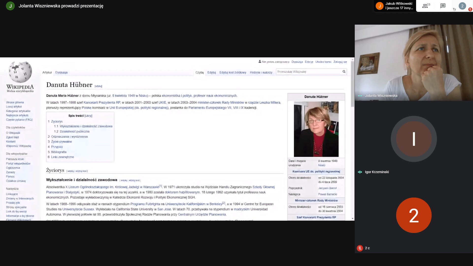 W ramach aktywności przeprowadzone zostały we wszystkich klasach w ramach lekcji wiedzy o społeczeństwie zajęcia na temat historii i współczesności UE- pod hasłem ,,Zjednoczeni w różnorodności.” Poza tym uczniowie mieli możliwość wzięcia udziału w konkursach –kahoot, quzziz, sprawdzających wiedzę o UE oraz kompetencje językowe. Otrzymali także pakiet materiałów online. W piątek, 8 maja udało nam się zorganizować spotkanie na platformie Google meet z Panią Europoseł Danutą Hübner. Pani Profesor jest osobą, która uczestniczyła w negocjacjach poprzedzających wejście Polski do UE. Była pierwszą polską komisarz w UE. Jest wybitną specjalistką w dziedzinie ekonomii i spraw publicznych. W PE zaangażowana jest w pracę kilku komisji w tym m.in. Komisji Spraw Konstytucyjnych. Odpowiadał też za negocjacje Brexitowe, jako członkini Grupy Sterującej ds. Brexitu.