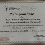 W dniach 29.09-03.10.2025r. uczniowie klas drugich byli na wyjeździe integracyjno-szkoleniowym w Bystrzycy Kłodzkiej w ramach EuroWeeku . Zajęcia warsztatowe prowadzone były w języku angielskim przez wolontariuszki. Młodzież miała wiele możliwości zaprezentowania umiejętności językowych w zadaniach grupowych i indywidualnych. Zwiedziliśmy Muzeum Filumenistyczne w Bystrzycy Kłodzkiej, w którym zgromadzone są eksponaty związane z ogniem, zapałkami i zapalniczkami.